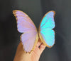 Echter blau schillernder Morpho Schmetterling im Bilderrahmen.